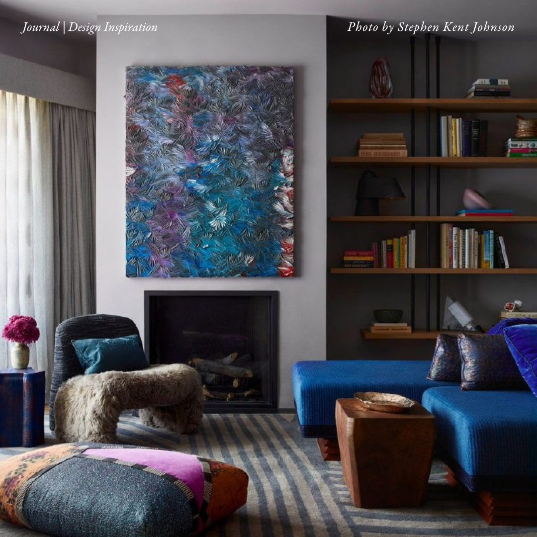 This aesthetic is complemented by a striking blend of furniture, combining vintage and custom pieces adorned with textured fabrics or luxurious leathers.