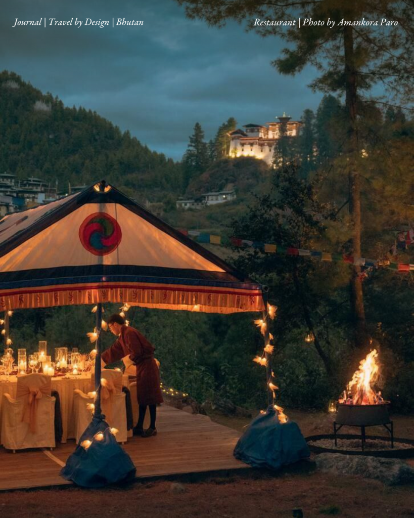 Design here leans into nature: riverside dining beneath the stars, timber decks, and open-air settings shaped by the valley. Bhutanese flavors are served with global finesse. It’s a quietly luxurious culinary journey, tailored to place and mood.