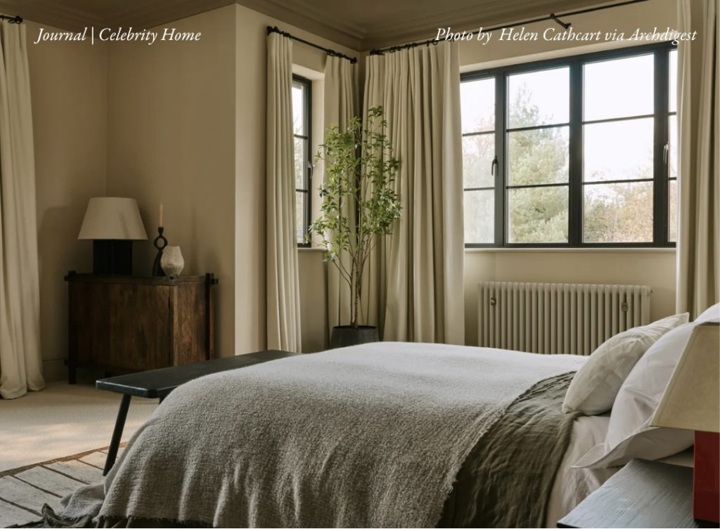 Softly layered in neutral tones, Ben’s guest room reflects the calm rhythm that runs throughout his home. The warm mushroom-hued walls and natural textures create a serene retreat, while the gentle flow of linen drapes and subtle lighting evoke an understated sense of comfort, a quiet luxury meant to make guests instantly feel at ease.
