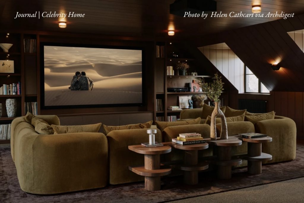 Tucked upstairs, this room captures Ben’s lifelong love for movies. Designed for comfort and connection, the modular sofa can be rearranged to suit quiet solo nights or lively gatherings with friends. With its soft textures and intimate lighting, the space feels like a personal retreat, where stories come to life, and time slows down just enough to enjoy them.