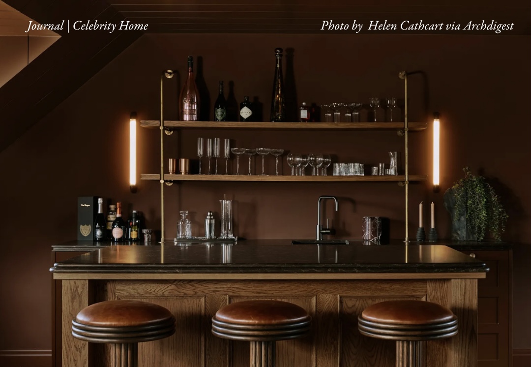 Tucked within the cinema room, the bar feels like a hidden retreat after a long day. Its deep, moody palette and tactile wood details set the scene for relaxed evenings, whether hosting friends or winding down with a favorite drink. The soft lighting adds a cinematic warmth, mirroring the easy sophistication found throughout Ben’s home.