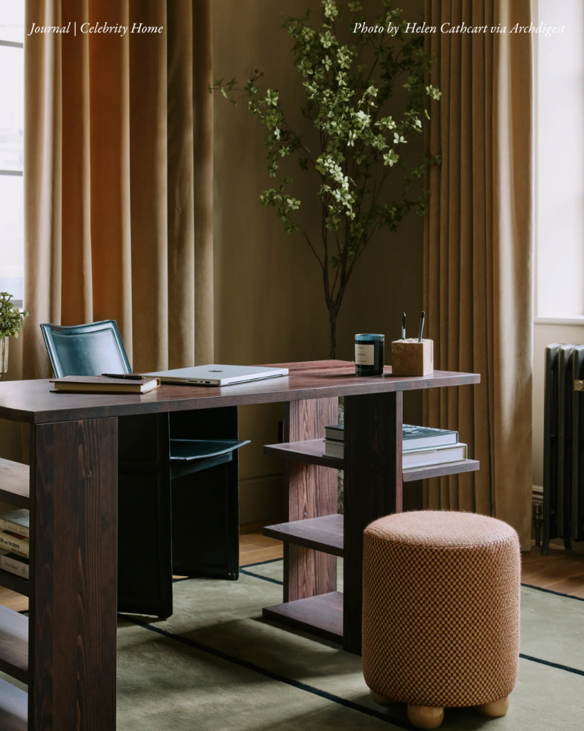 Ben’s home office offers a deliberate pause from his fast-paced world, a personal zone of focus and restoration. The space balances structure and softness, with clean lines and tactile materials that invite clarity of mind. Its muted palette and absence of sports memorabilia underline its purpose: a room for thought, creativity, and calm away from the noise.