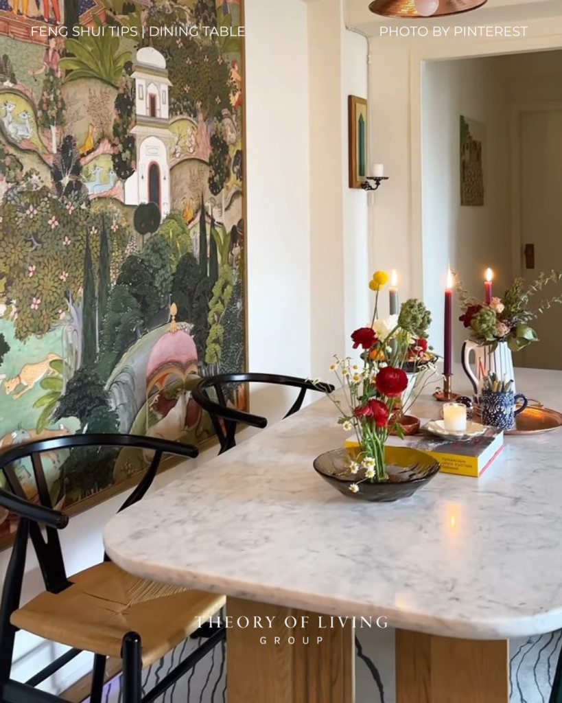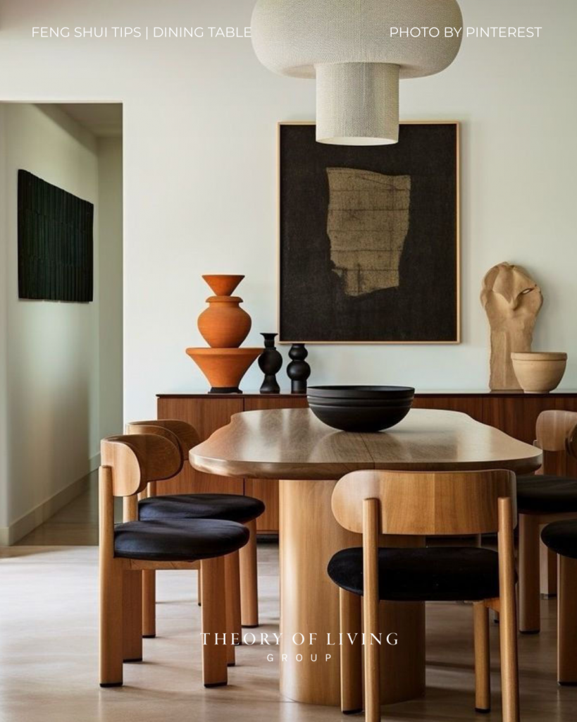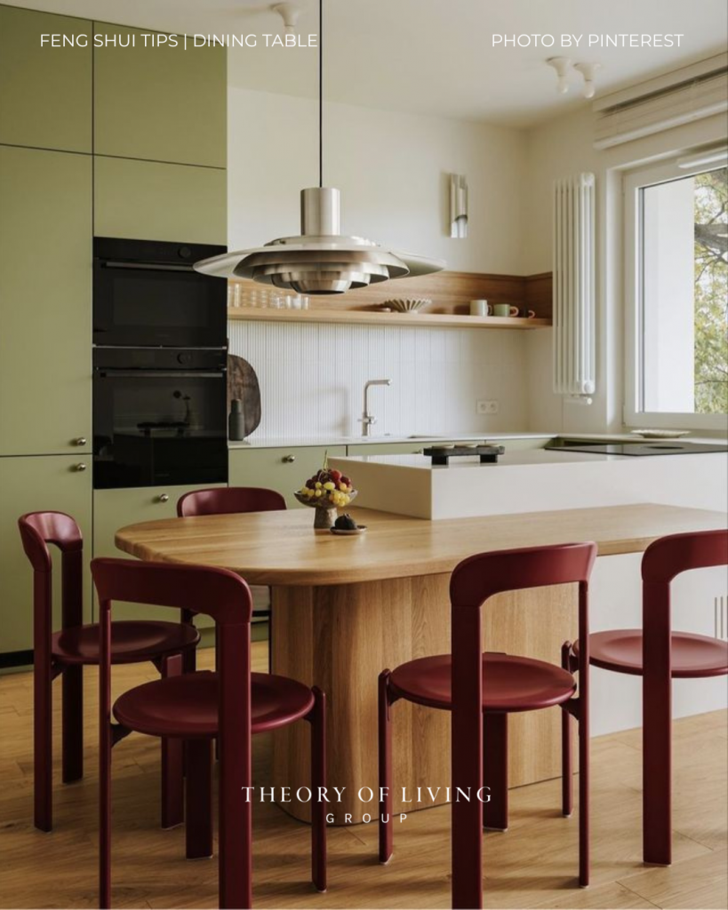 Round or oval tables represent togetherness and smooth energy flow.