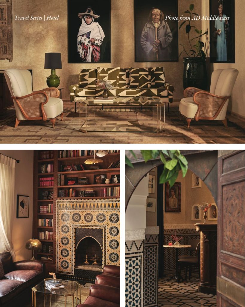 Riyad Mena & Beyond, located a short walk from the main square, features vibrant courtyards, seven charming suites, and a calming atmosphere designed by Romain Michel Meniere. Nearby, Berber Lodge offers a serene escape among olive trees with stunning mountain views.