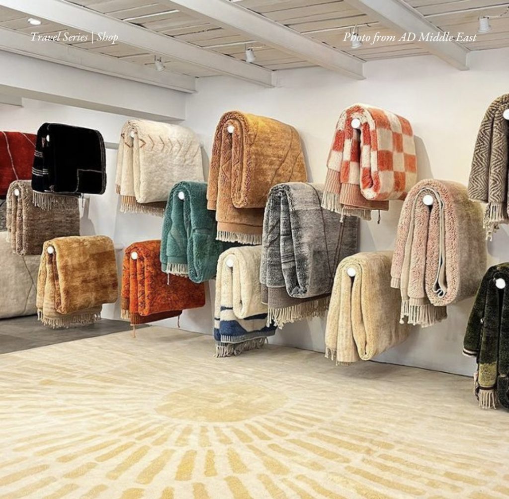 Sana Benzaitar, daughter of a famous rug dealer from Marrakesh, designs rugs in her minimalist showroom in Gueliz and collaborates with clients for custom commissions.